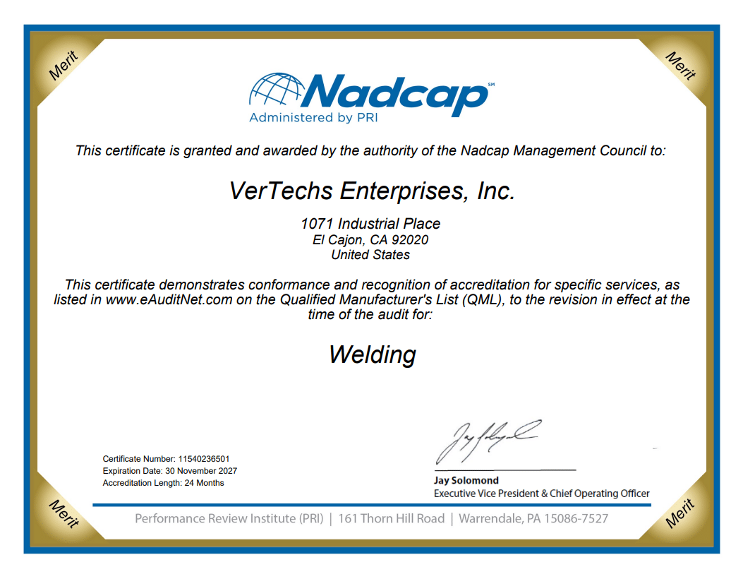 It is the policy of VerTechs Enterprises, Inc. to meet or exceed our customers’ expectations in providing the best quality products in the aerospace industry.